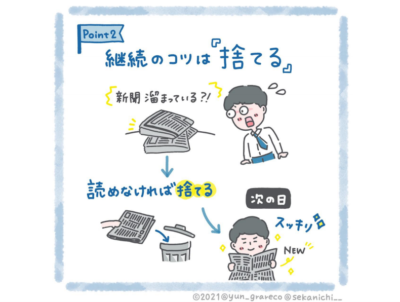 2848周りに宣言することで新聞を読むことを継続し、新聞を読むことも投稿も雑でいいので、とにかく続けてみてください。継続は力なりです。