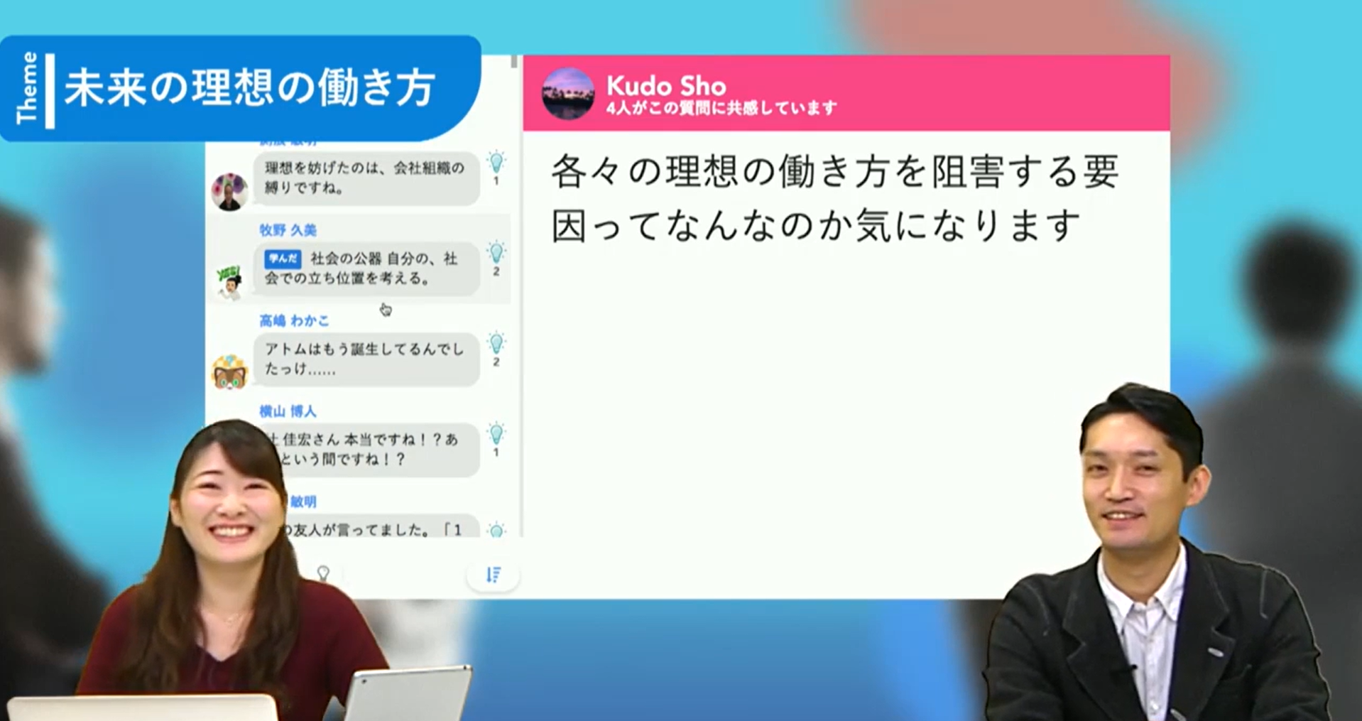 今回皆さんと考えるテーマを発表します。今回のテーマは「未来の理想の働き方」です。