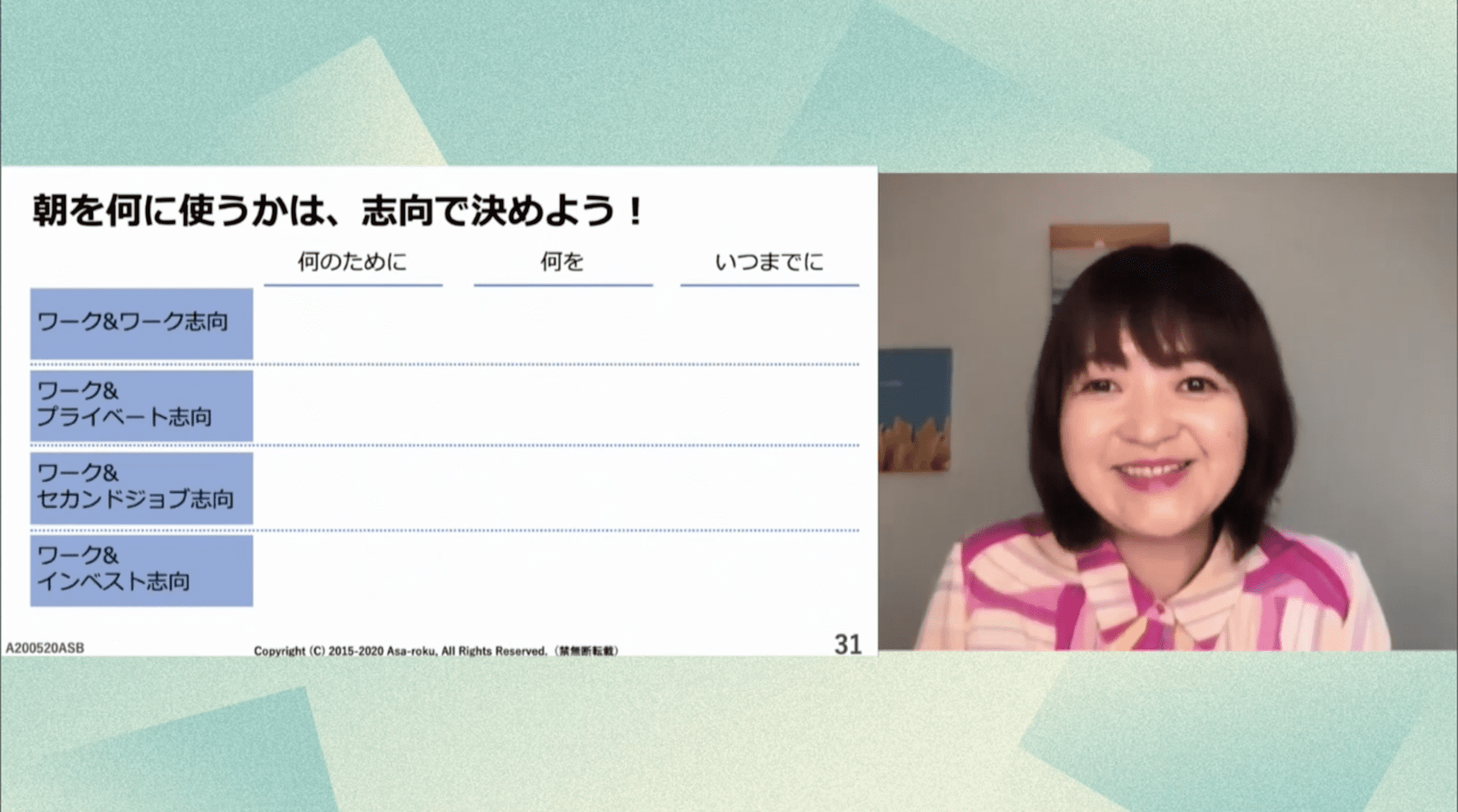 今回の授業では「朝活」の第一人者、池田千恵先生に「朝1時間」だけ早起きして勉強時間を捻出する方法・キャリアの方向性を定める方法を教えていただきます!