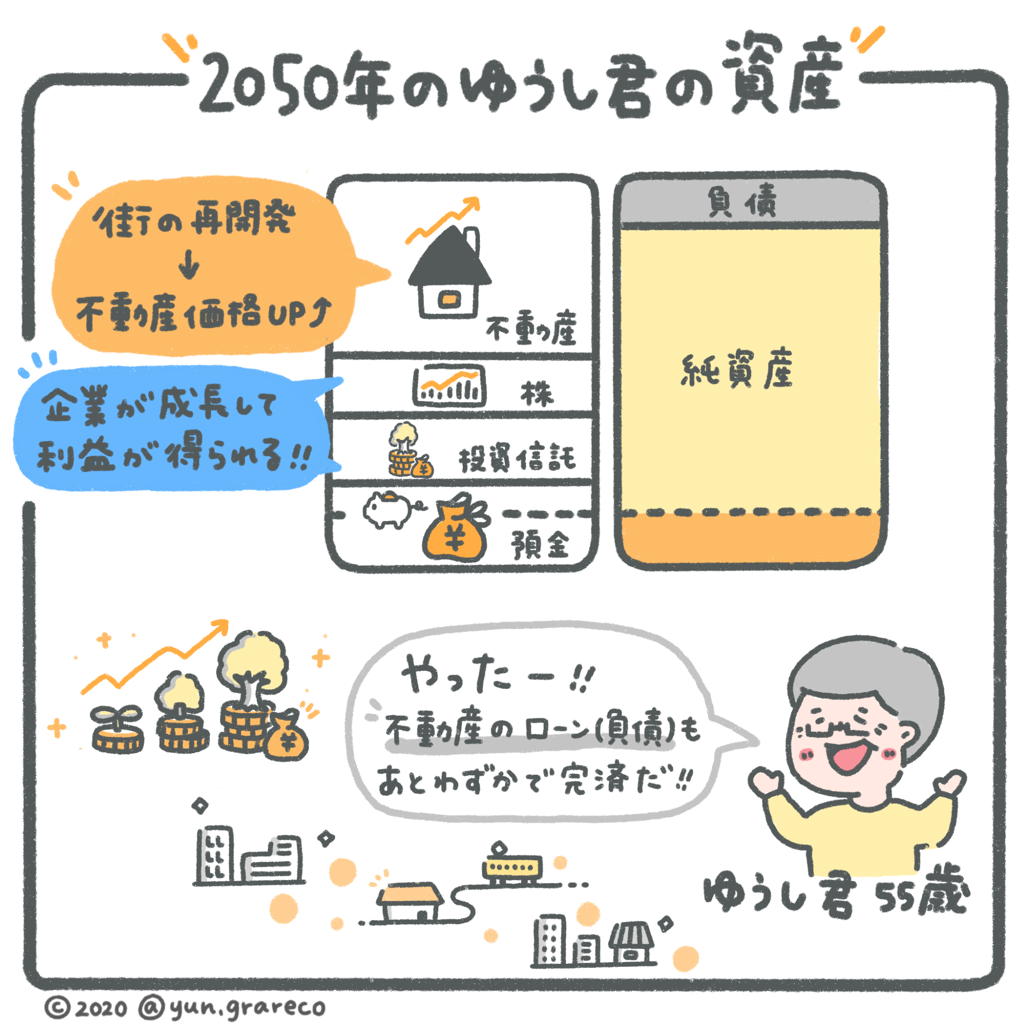 - 株や投資信託は長期目線だと必ず上がる。30年後の資産について