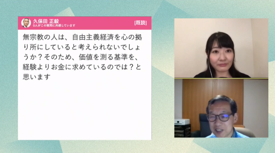 27ここで質問をご紹介します。「無宗教の人は、自由主義経済を心の拠り所にしていると考えられないでしょうか。そのため、価値を測る基準を、経験よりお金に求めているのでは?と思います。」とのことです。島田先生、いかがでしょうか。
