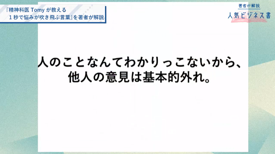 『精神科医Tomyが教える1秒で悩みが吹き飛ぶ言葉』著者:精神科医Tomyさん