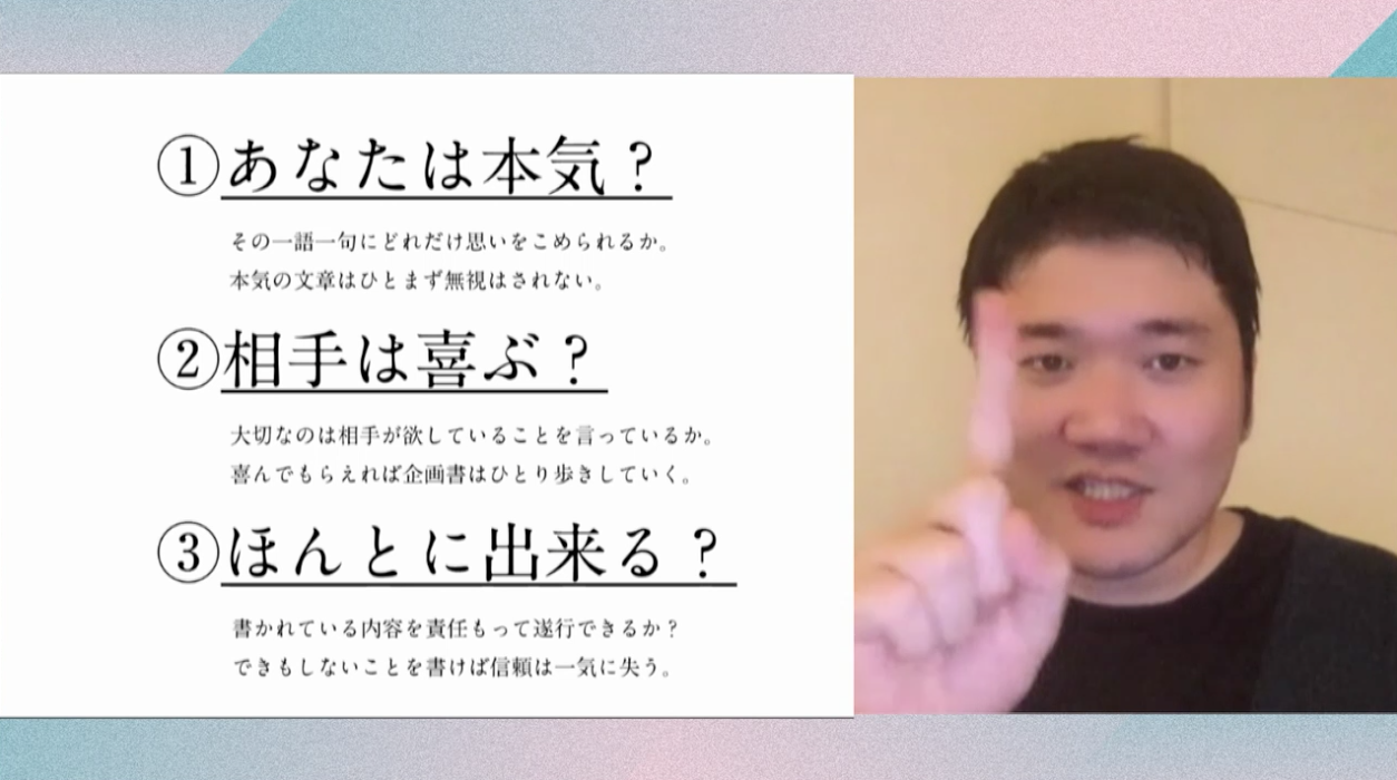 そこで今回は上手く相手の心に響かせる企画書の作り方をコピーライターの阿部広太郎先生が実際に作った企画書を紹介しながら教えていただきます。